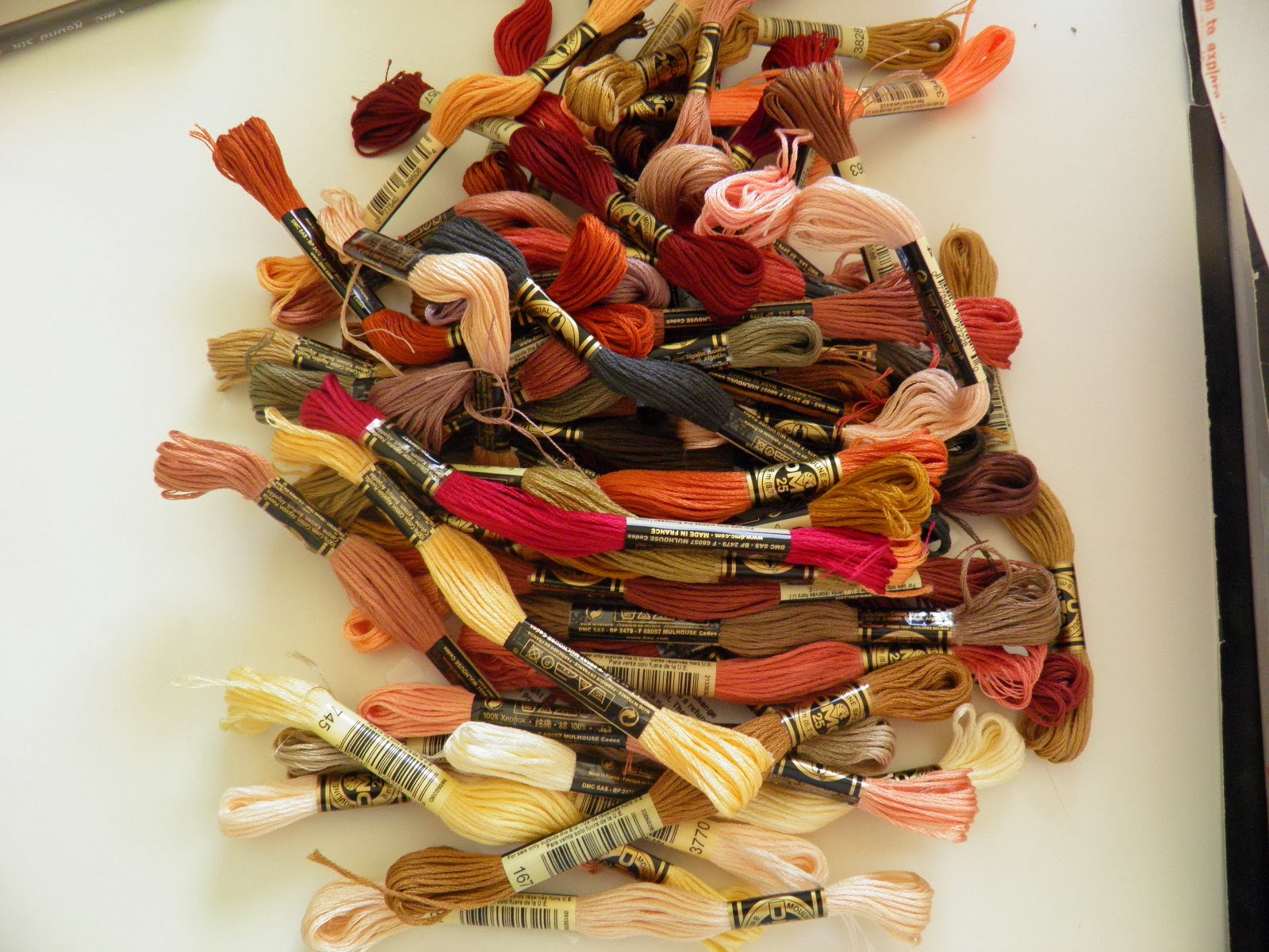I started by pulling out all of my floss from my bag, my bobbin box and even have some in little bags that were given to me.